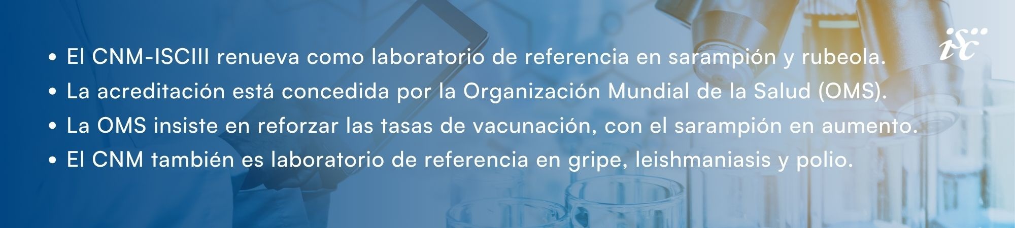 El Centro Nacional de Microbiología (CNM) del Instituto de Salud Carlos III (ISCIII) ha sido reacreditado por la Organización Mundial de la Salud (OMS) como Laboratorio Nacional de Referencia para Sarampión y Rubeola. El citado laboratorio forma parte de la Red Global de Laboratorios de Sarampión y Rubeola que la OMS tiene repartida por todo el mundo.